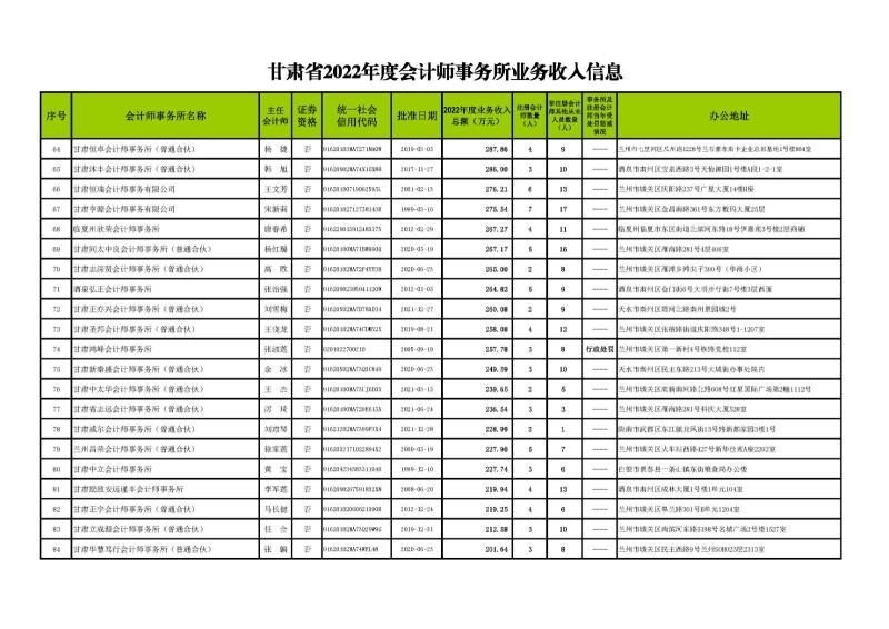 【甘会协[2023]49号】甘肃省注册会计师协会关于发布《甘肃省2022年度会计师事务所业务收入信息》的通知
